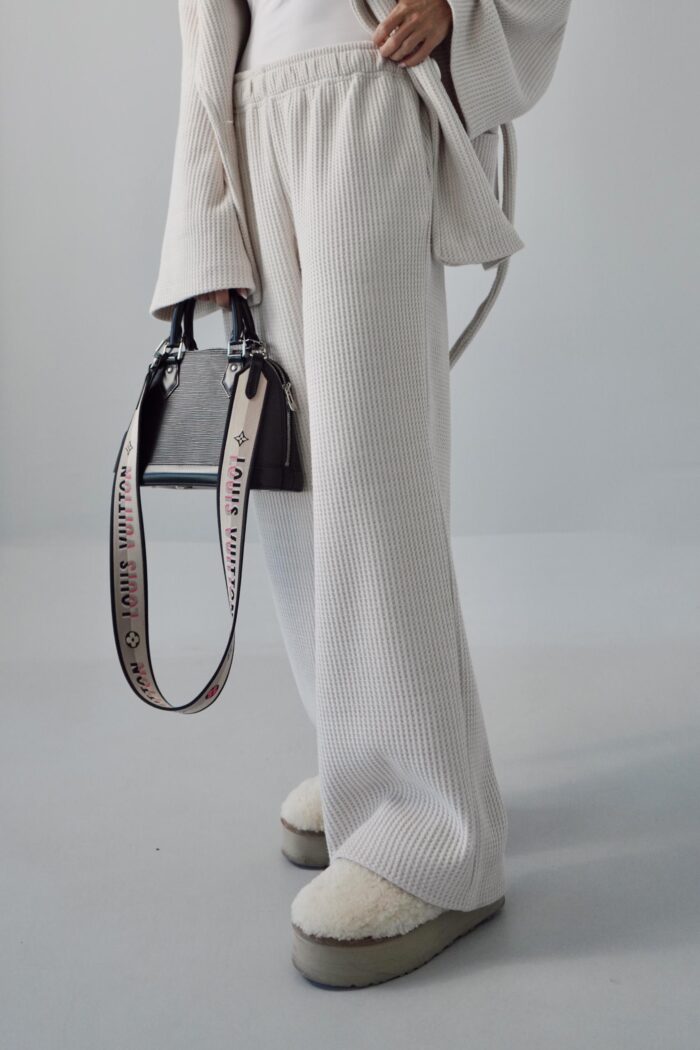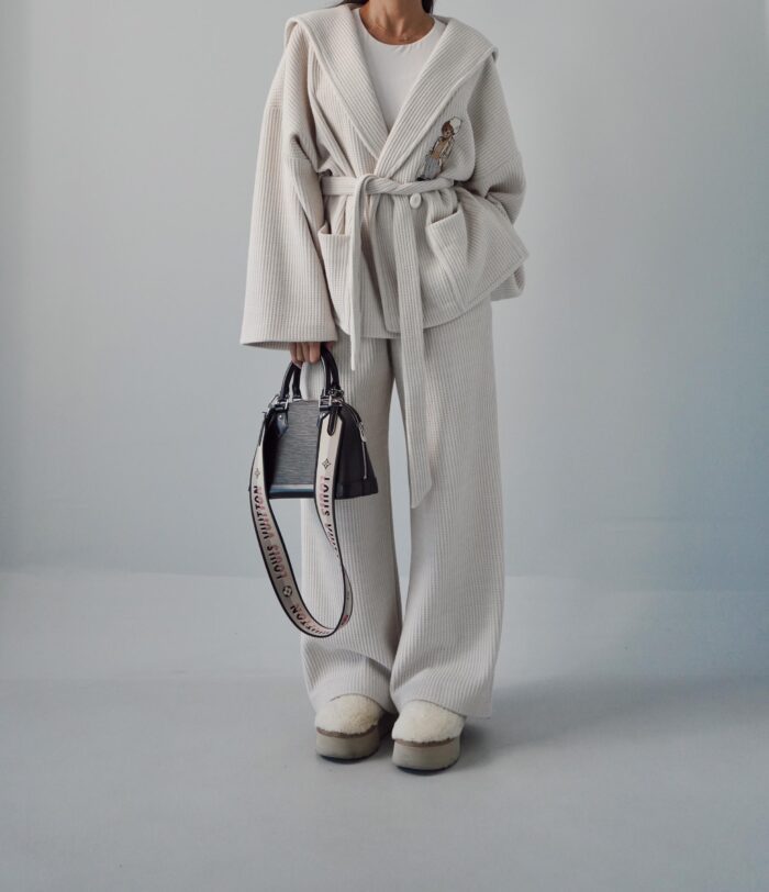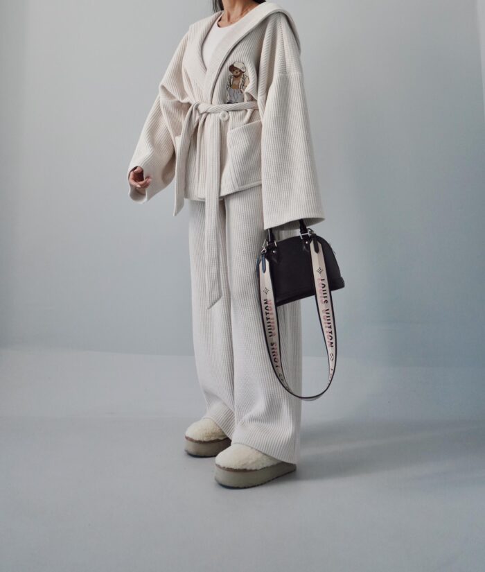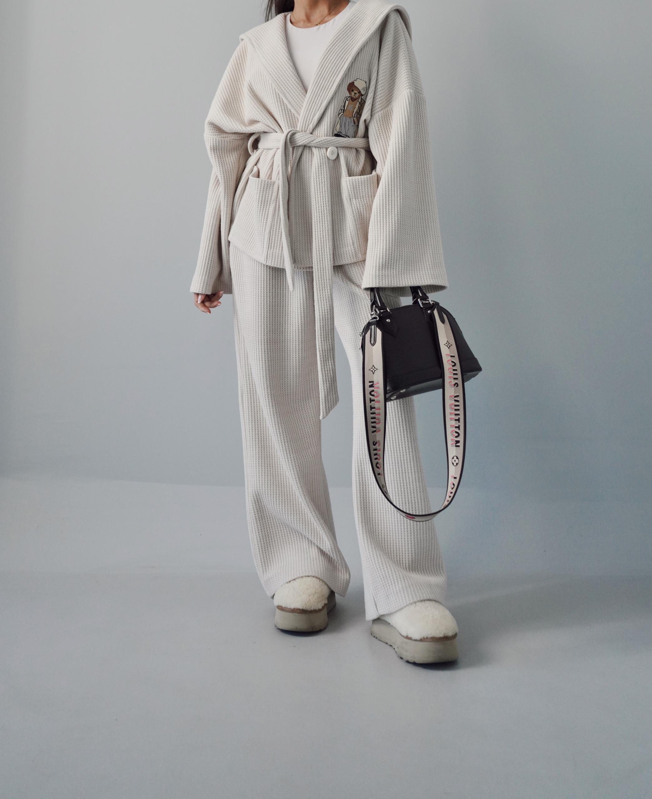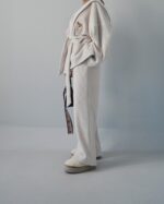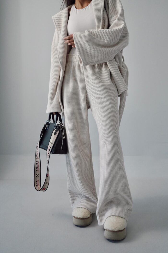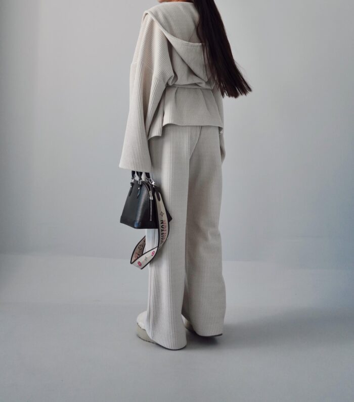 شلوار این ست، مدل راسته و بلند طراحی شده تا هم راحتی کامل داشته باشید و هم استایل ترندی و خاص خودتون رو بسازید.
